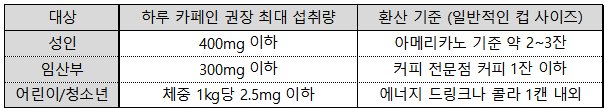 [Tip] 커피를 가장 건강하게 마시는 시간은 기상 직후보다는, 코르티솔(스트레스 조절 호르몬) 수치가 떨어지기 시작하는 오전 10시~11시 사이 또는 오후 2시~3시 사이가 가장 효과적입니다. '커피(카페인) 권장 섭취량에 대한 출처 (링크)'는 앞서 포스팅한 글을 참조하시기 바랍니다.